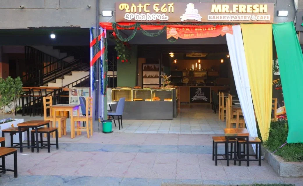 Mr. Fresh Bakery & Café is conveniently located in Addis Ababa, offering a warm and welcoming space where customers can enjoy fresh baked goods, delicious meals, and hot drinks in a comfortable setting.